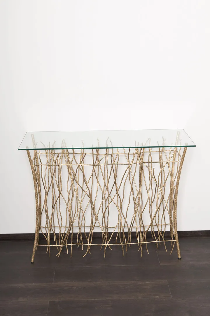 – Material/Farbe: Eisen gehämmert gold, Glasplatte Float klar 8 mm